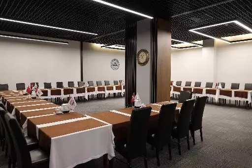 Üniversitemiz, çağdaş üniversite anlayışı doğrultusunda, eğitim ve araştırma faaliyetlerinin yanı sıra kurumsal temsil ve mimari kaliteyi önceleyen yatırımlarını sürdürmekte; fiziki mekânların niteliğini artırarak güçlü, saygın ve sürdürülebilir bir kurumsal yapı oluşturmayı hedeflemektedir. Bu doğrultuda yemekhane bölümünde yeni yapılan Konuk salonu; estetik, konfor ve işlevselliğin bir arada ele alındığı mimari anlayışla tasarlanmış olup, üniversitemizin kurumsal kimliğiyle uyumlu, nitelikli ve prestijli bir mekân olarak planlanmıştır. Mekânın mimari kurgusu, resmi kabuller, kurumsal görüşmeler ve protokol ağırlamalarına uygun bir atmosfer sunarak, üniversitemizin temsil gücünü güçlendirmektedir